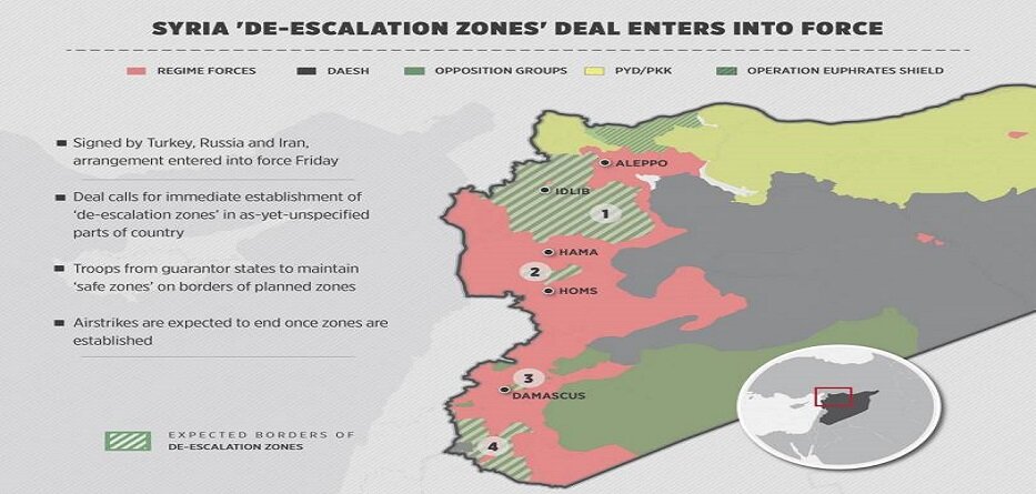 أعلنت وزارة الخارجية في كازاخستان أن المشاركين في جولة مباحثات أستانة المقبلة سيعملون على التوافق على حدود وخرائط مناطق خفض التصعيد في سوريا، فيما أطلع المبعوث الأممي إلى سوريا “استيفان دي ميستورا مجلس الأمن على ترتيباته لعقد جولة جديدة من مفاوضات جنيف أواخر شهر آب/أغسطس المقبل.