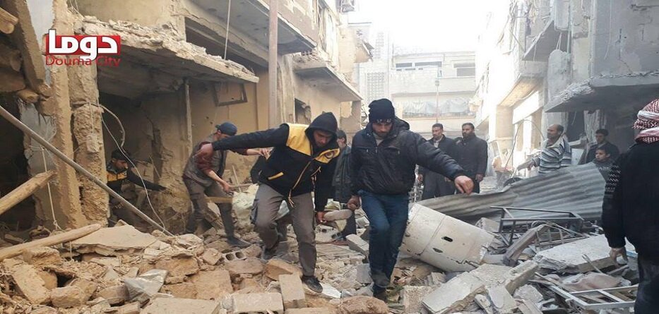 قصف جوي على مدينة دوما في الغوطة الشرقية 8 كانون الثاني 2018