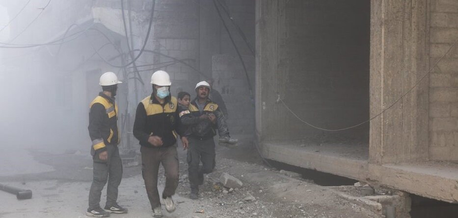 الدفاع المدني ينقذ أحد الأطفال إثر غارات شنتها طائرات النظام على الغوطة الشرقية