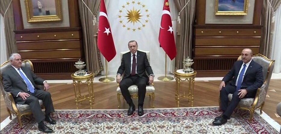وفي خرق للبروتوكول، حضر وزير الخارجية التركي اللقاء بين تيلرسون وأردوغان في القصر الرئاسي وتولى الترجمة بينهما كما قالت مصادر أمريكية.