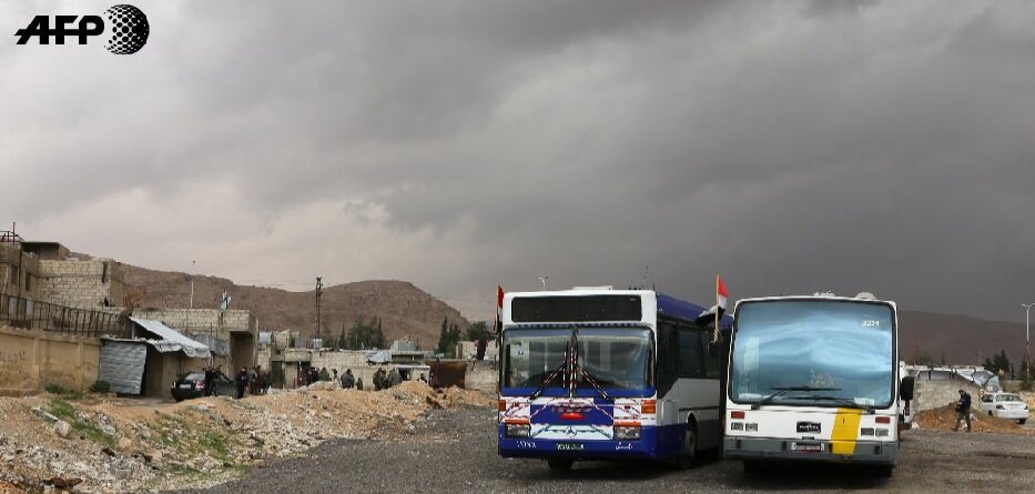 حافلات الترحيل التي جهزها النظام لأهالي الغوطة الشرقية لتهجيرهم قسريا عن المنطقة