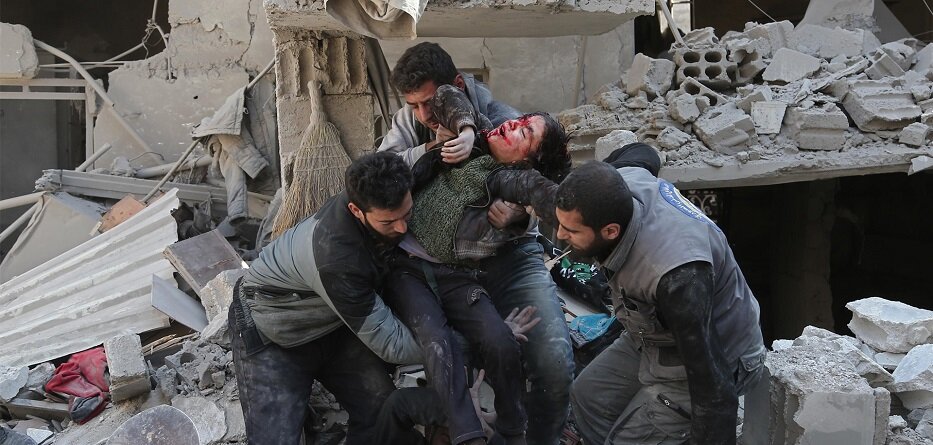 الدفاع المدني ينتشل طفلة أصيبت في قصف لقوات النظام على الغوطة الشرقية