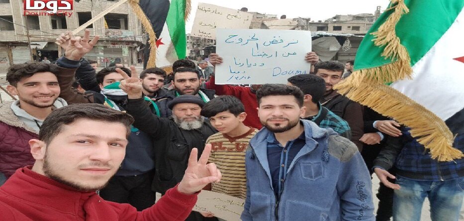 مجموعة من أهالي مدينة دوما يعلنون رفضهم الخروج من مدينتهم