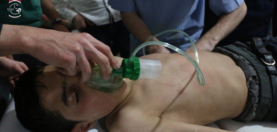 وكانت تقارير طبية وحقوقية وصحفية ميدانية ودولية قد أكدت ارتكاب قوات النظام مساء أمس السبت مجزرة مروعة في مدينة دوما حيث نفذت هجومين جويين كيميائيَين استهدفا شمال المدينة، بينهما ثلاث ساعات تقريبا، الأول وقع قرابة الساعة الرابعة مساءا قرب مبنى فرن سعدة في شارع عمر بن الخطاب؛ تسبَّب في إصابة 15 شخصا، أما الهجوم الثاني فقد وقع قرابة الساعة السابعة والنصف بالقرب من ساحة الشهداء في منطقة نعمان؛ وتسبَّب في مقتل ما لا يقل عن 55 شخصا، وإصابة ما لا يقل عن 860 مدنيا.