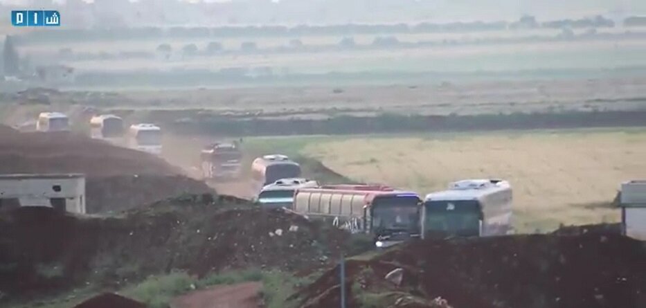 دخول حافلات إلى كفريا والفوعة بريف إدلب ضمن اتفاق إجلاء بين هتش وحزب الله اللبناني الثلاثاء 1 أيار 2018