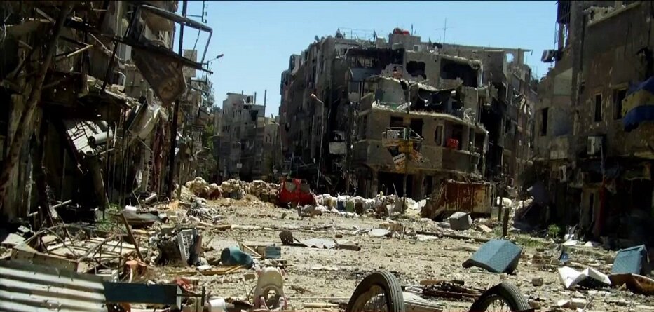آثار الدمار في مخيم اليرموك جراء القصف الجوي والمدفعي